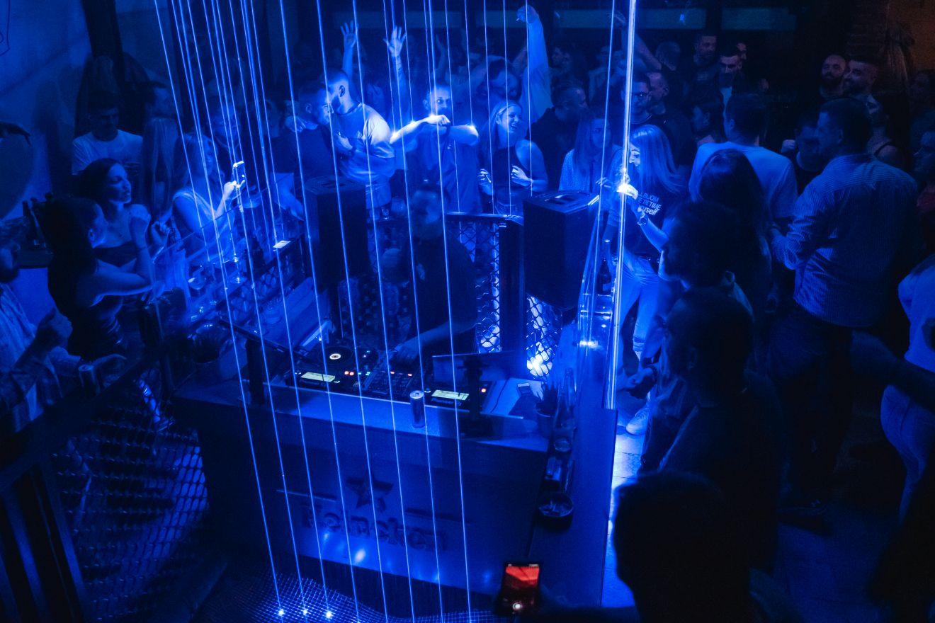 Gornji sprat na sredini ima ograđen ambis, a pogled na prizemlje sličan je onom iz londonskog Printworks-a (na neki moj romantizovan način, prim. aut.); čak i sama DJ kabina niža je u odnosu na publiku, a visoke tavanice i uzan hodnik doprinose sjajnom ambijentu, uz dobro podešene lasere i svetla. Bane nam ističe da su ambis pregradili na sredini mostom ne bi li proširili podijum i bolje spojili izvođača sa masom, kao i da konstantno dotežu kvalitet zvuka i samog doživljaja za svakog gosta – vodi se računa o broju ljudi, ventilaciji, a gornji sprat ima čak dva šanka.