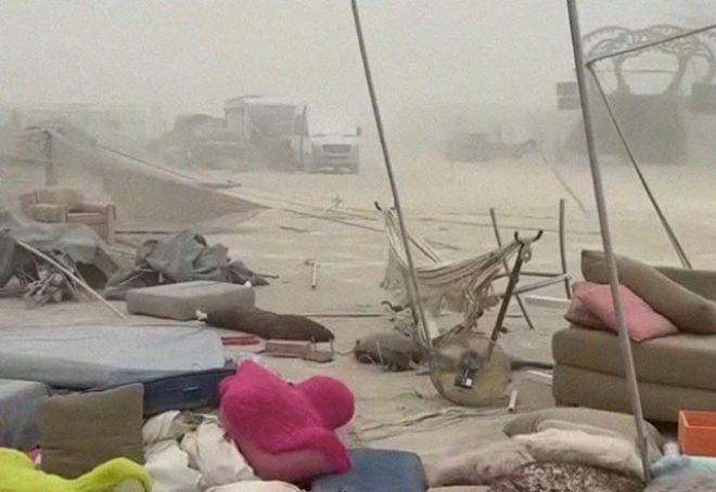 Novosti Burning Man započeo “kaotično“ zbog poplava i upozorenja na pješčane oluje Četiri su osobe do sada ozlijeđene zbog ekstremnih vremenskih uvjeta na festivalu u Black Rock Cityju, dok se u idućim danima očekuju gromovi, vjetrovi od 80 km/h i još nepogoda