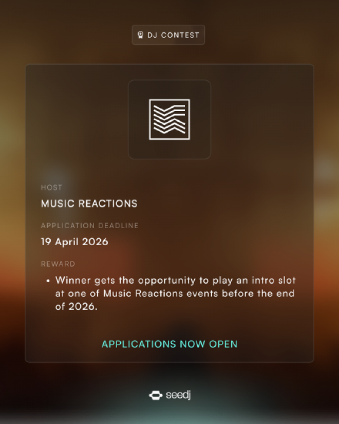 Music Reactions, u saradnji sa SEEDJ platformom, otvara DJ konkurs čiji će pobednik imati priliku da nastupa na jednom od Music Reactions rejvova do kraja 2026. godine, u Beogradu.